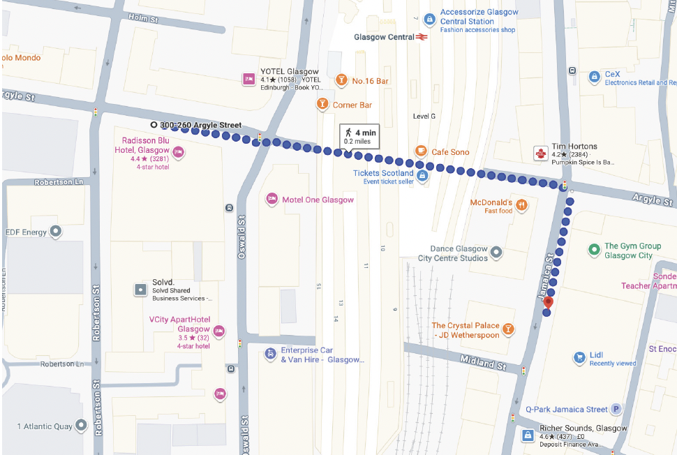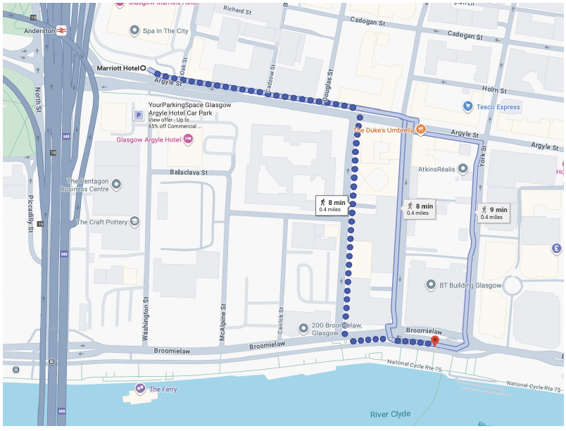 Temporary stop for stop 9 will be located on the fast Link on Broomielaw. (as shown on the map below)